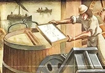 Hij maakte met de pulp in het schepraam de beroemde "Papermaker's shake", om de pulpvezels goed te leggen en beter papier te krijgen. In het boek van Kate Lynch staat dat als volgt omschreven: