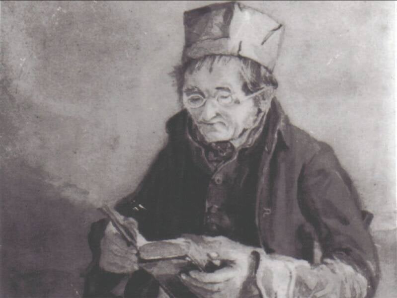 Hieronder staat vermoedelijk de leerling-papiermaker Marchant Warrell, einde 18e eeuw.
