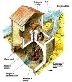 In het park Saint Pons Gémenos, in het Dal van Le Fauge, ligt een ruïne van een oude papiermolen. Er ligt ook nog een compleet kanalenstelsel om het water van le Fauge te kunnen sturen naar de oude papiermolen. Men kon d.m.v. een soort afsluiters de hoeveelheid water regelen en daarmede de snelheid van de schoepwielen van de molen. Zie de schoepenwielen hieronder afgebeeld; zij liggen horizontaal. Dááronder een afbeelding van de waterloop op het schoepwiel, i.c. het bedoelde principe.