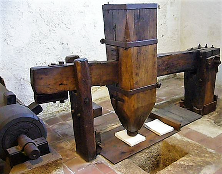De eerste papiermachine, die het begin inluidde van handmatig papier scheppen / maken naar het machinaal produceren van papier.
