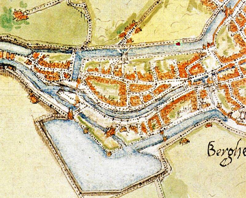 Hierboven staat een oude kaart van Jacob van Deventer, met de getijdenmolen ingetekend.