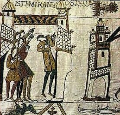 Hij zag in april van dat jaar de Komeet van Halley en vond dat een goed voorteken voor de strijd. Die strijd én de Komeet zijn afgebeeld op het beroemde Tapijt van Bayeux, rechts boven in het detail hierboven; je ziet de mensen wijzen. Trouwens, die Komeet van Halley wordt in 2061 weer verwacht in ons zwerk.