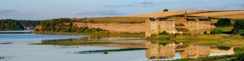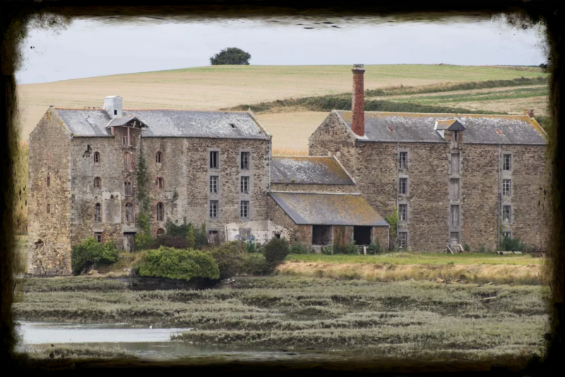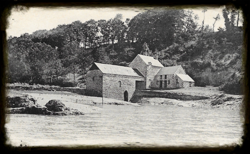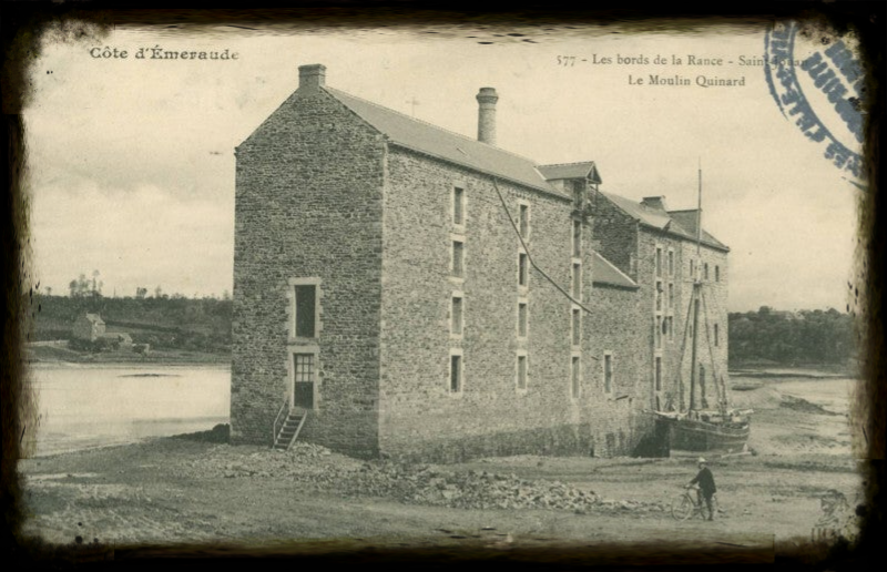 'Un tel moulin fonctionne sur le flux de la marée, du flux et du reflux. Dit oude juweel, zeg maar BIJOU, ligt aan de Smaragd Kust of Côte D'émeraude van Bretagne. De oude naam van molen was Launay-Quinard, een korenmolen van de familie Burgot, daarna Dagornes en als laatste maalder De Fanouillères.