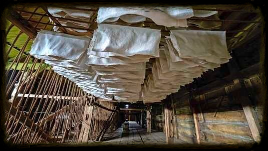 Duidelijk is er sprake van een zolder, waar spanten en 'basten' (mogelijk ruw bewerkte takken voor de sporen) in voorkomen. Hier werd het geschept en geperst papier te drogen gehangen.