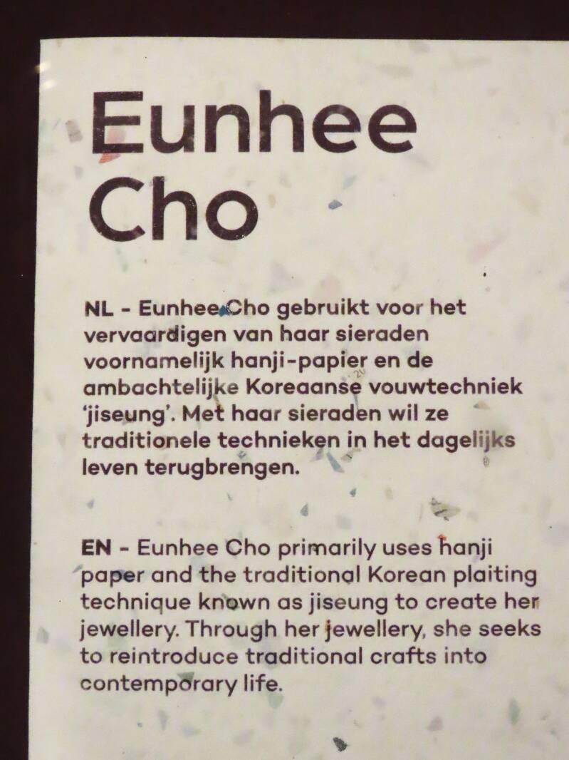 Er wordt bij het maken van Hanji-papier gebruikt gemaakt van een techniek, die dochim wordt genoemd en overeenkomt met de, bij ons niet gebruikte, gladhamer maar wel elders in Europa en de wereld. Het is een methode, een afwerkingsproces, om de vervaardigde en uitgespreide vellen papier te beuken met een grote stamper, om de vezels te verdichten en inktbloeding te verminderen, dan wel tegen te gaan. Hieronder staat werk van de Koreaanse kunstenares Sun Lee, die in het papiermuseum CODA in Apeldoorn exposeerde in augustus 2023. Ook zij werkte met Hanji-papier om tunieken, vesten en blouses te maken. Op de YouTube-film is te zien hoe zij te werk gaat. Heul erg interessant en intensief. Die techniek van papier weven heet heel mooi "JI SEUNG ". In 2025 was de Koreaanse PAPIER-kunstenares Eunhee CHO met haar papieren juwelen in het CODA-museum. Zij schreef over deze website het volgende: