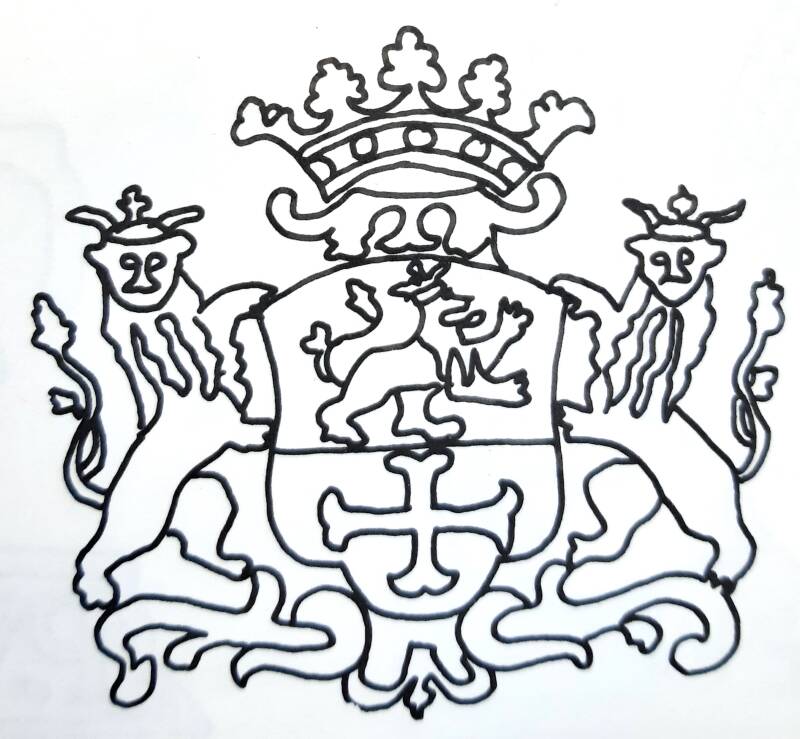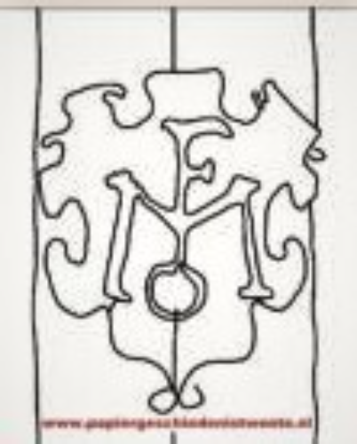 Op een oude prent heeft men het vermoedelijke watermerk van Marten Orges gevonden en door Gerrit Jansen ( zie zijn opmerking hierboven !)op een schepraam laten borduren of naaien met heel fijn koperdraad. Met dat nieuwe schepraam én nieuw watermerk kan men nu papier scheppen in de hierboven genoemde Ruitermolen in Beekbergen. Alweer een welkome uitbreiding, nietwaar ? Hieronder is het, ietwat vage, watermerk afgebeeld. Dat watermerk stond in de Atlas van Mercator uit 1612. De letters 'F' (fecit, hij heeft het gemaakt) , 'M' (Marten) en 'O ' (Orges).