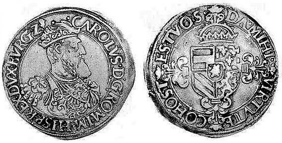 1 Carolusgulden ( bestaande in goud, de carolus d’or uit 1517 en in zilver, de carolus d’argent uit 1543) was 20 stuivers waard en vernoemd naar- en geslagen ten tijde van keizer Karel V. Die geldstukken zijn hierboven te zien