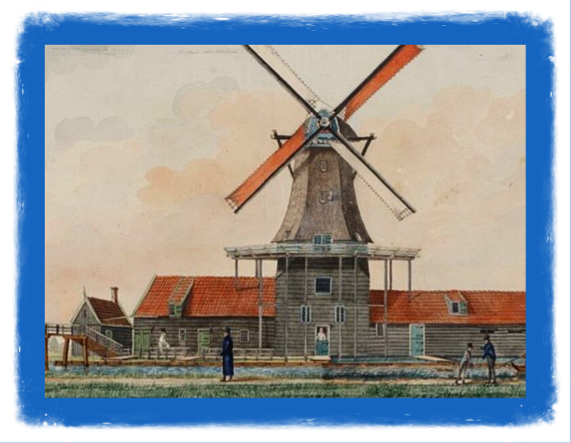 Ik moet daarom toch, als laatste, nog even een historisch uitstapje maken naar onze Hofstad, regeringsstad én jammer genoeg géén hoofdstad, namelijk 's-Gravenhage, en wel naar de Zuid-west Binnensingel, nu Buitenom geheten, op de hoogte van de Prinsegracht. Daar stond sinds 1714 een korenmolen met de mooie Haagse naam Ooievaarsmolen (naar het Wapen van de stad ) of Brouwersmolen ( Moulin des Brasseurs).