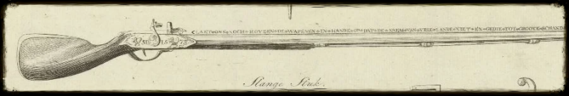 Persoonlijke wapens in allerlei vormen, héél effectief. Die papiermakers hadden thuis een zijdgeweer, een snaphaan of een pistool . Deze wapens gingen mee, onderweg naar Amsterdam, als verdedigingsmiddel tegen het geboefte. Hieronder staat het vuursteenslot van een snaphaan. Toepasselijk in dezen is, dat een snaphaan ook de benaming was voor een struikrover ( én een door hem geroofde zilveren munt uit de 16e eeuw ). In Maastricht woonde een fameuze snaphaanfabrikant, François de la Haye. Voor de houten laden van het geweer en pistool wilde hij speciaal hout. "Er moet'goet droogh nootenbomen houdt worden gebruikt". Bij papierwatermolens op de Veulwe werden vroeger notenbomen geplant, waardoor de insecten niet op het geschepte en te drogen gehangen papier poepten. De notenbomen schenen een apart odeur af te scheiden. Zo, de link tussen molen en geweer is gelegd, zonder er harde noten over te hoeven kraken.